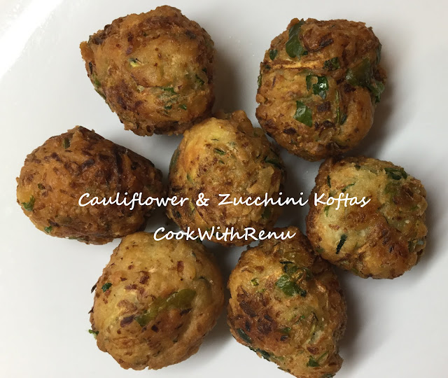 The other day I wanted to make veg manchurian but I did not had the usual ingredients. So decided to give it a go with what all I had. I used Cauliflower, zucchini and parsley for the balls or koftas. I added parsley bit hesitatingly because of its taste and flavour but to my surprise that gave the dish its taste. The balls/Koftas turned out to be very tasty and crunchy and half of them were finished before I could make the manchurian. So here goes the recipe: