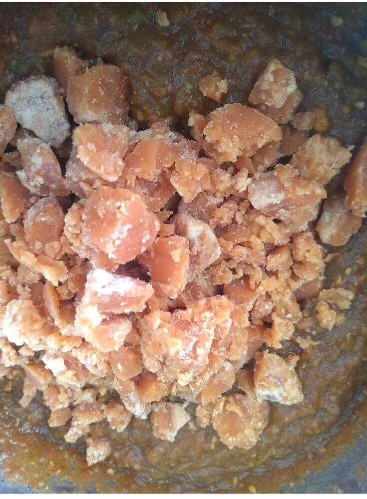 - Add Jaggery or Sugar, mix it and let this simmer further for 5 minutes.