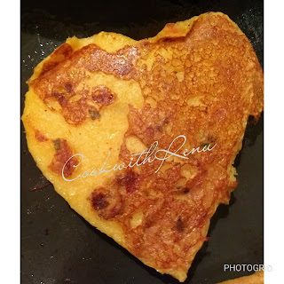 I love bread pakoda but I do not eat it because it is fried, but still I enjoy it, how, I shallow fry with minimal oil. A lot better than completely fried. Even this I avoid for breakfast as it has bread and top it with besan layer, it becomes too heavy for the tummy. So I generally make tomato omelette or veg omelette as it is called, made with Besan (Chickpea flour/Gram flour), onions and tomatoes.
