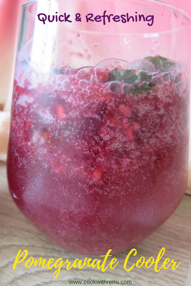 Anyways coming back to my recipe, I had bought this pomegranate specially to prepare a slush after I saw it from one of my friends post on Facebook group. Though I did not make a slush but made whatever came to my mind on that day. I did a mojito without alcohol and followed one step same from her recipe. I first pureed the pomegranate and then freezed it. I should have filtered it to remove the seeds, I did not do that as I think filtering juices removes the fibers and the health benefits of the fruit, but it was needed in this recipe. I then defrosted it for a couple of mins, and then started scraping the pomegranate puree so that I get that icy or slush like texture. Then in a glass I added some crushed mint, then the pomegranate ice, half a teaspoon of black salt and then finally sparkling water or soda. That’s it you are done. Enjoyed it thoroughly in this hot summer..