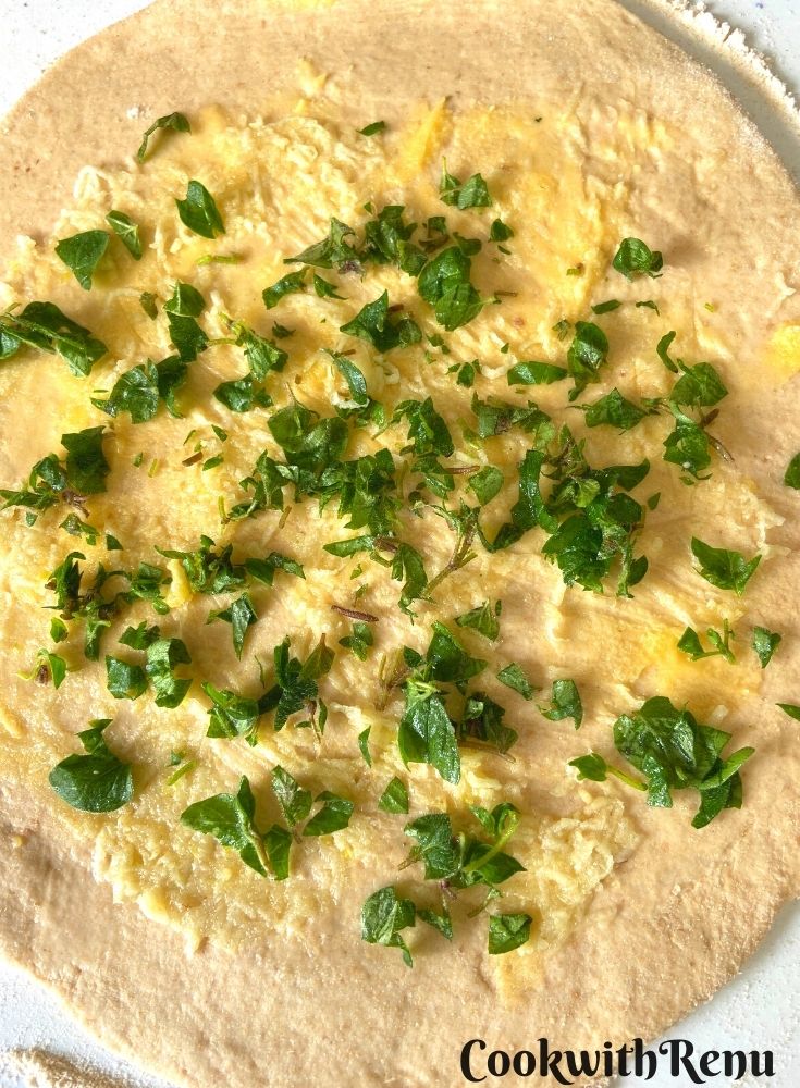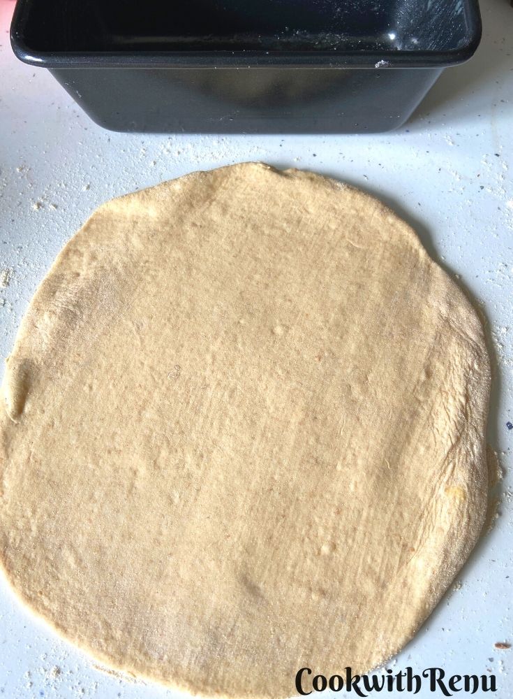 - Grease the baking tins with butter or oil and add the rolled and filled dough into the tin.