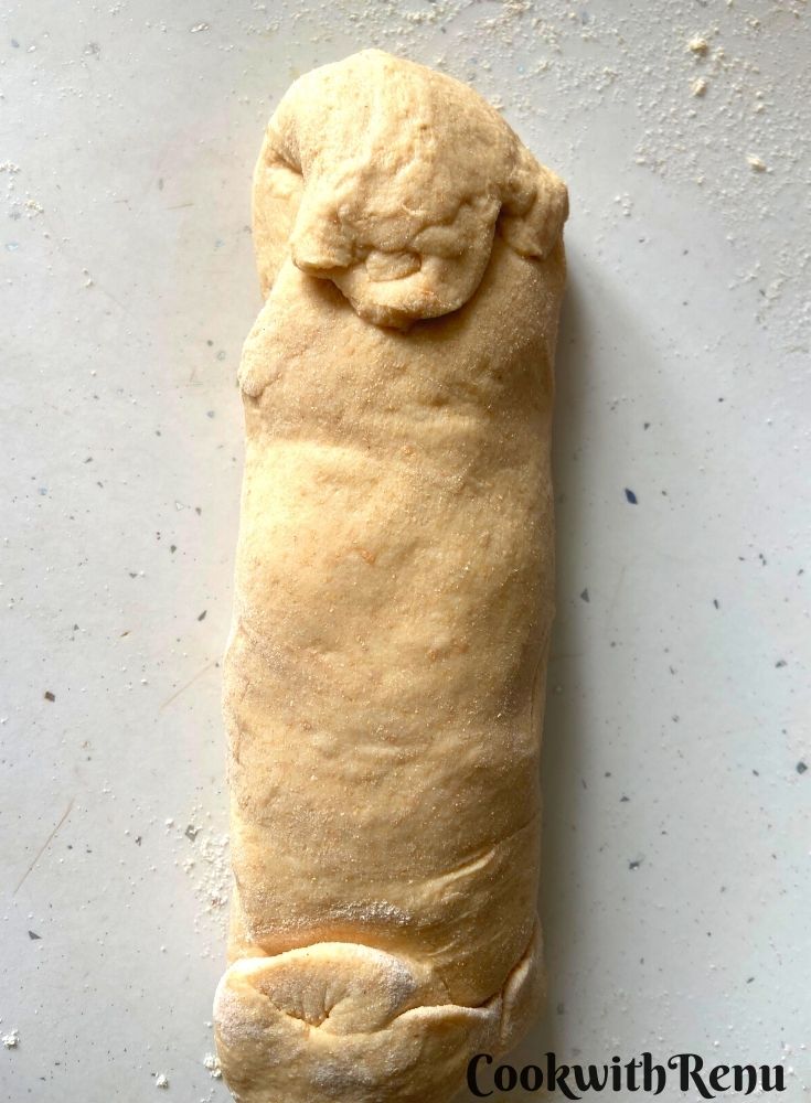 I have made mini version's of the bread as I wanted to add different fillings. But one can make 1 large too. The same dough can be shaped into buns or rolls and the filling can be added inside. Just play around as required.