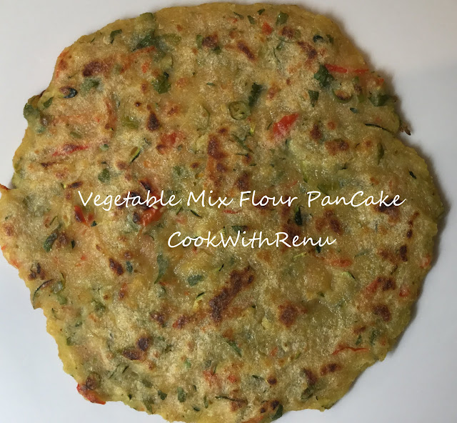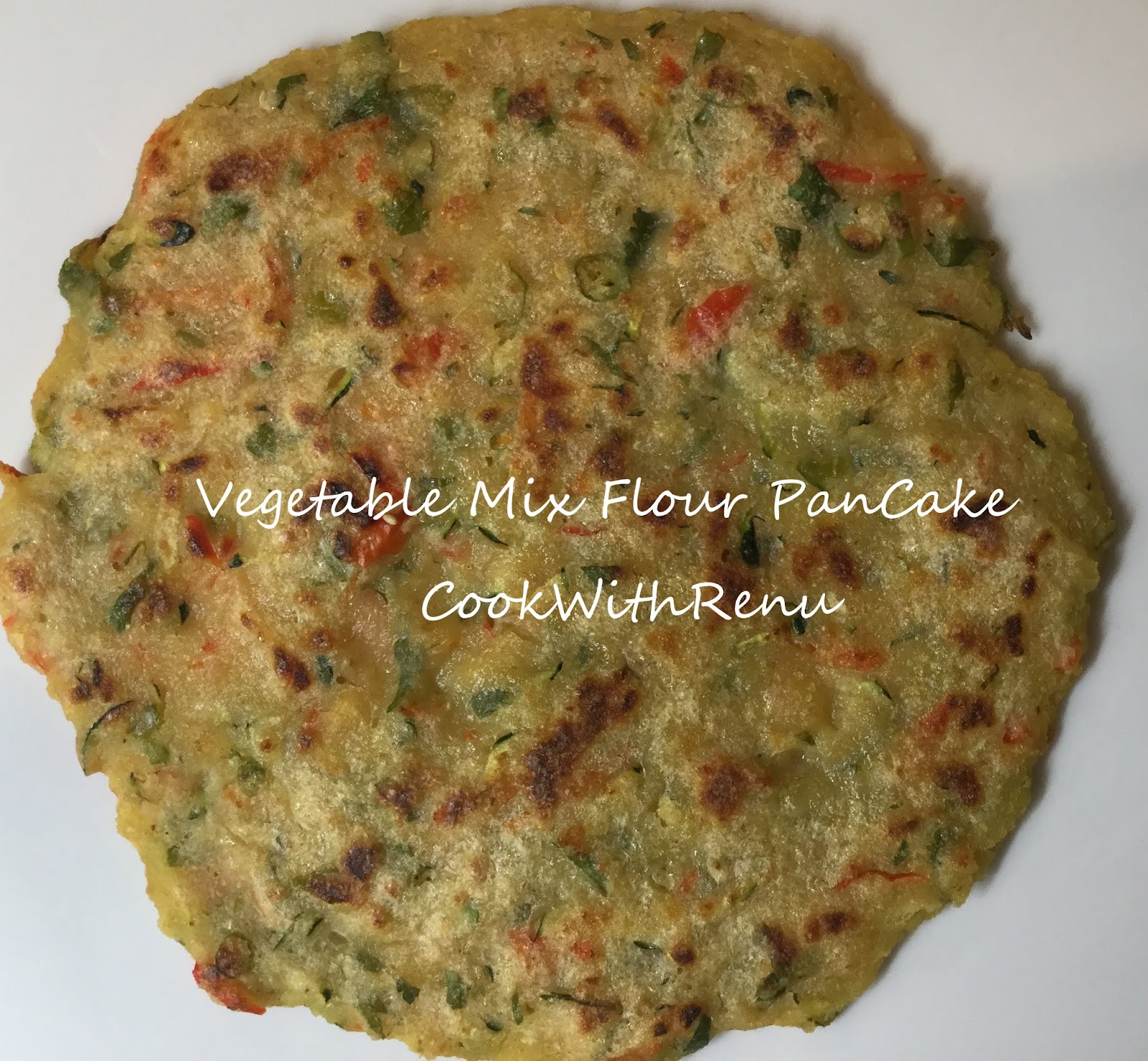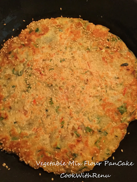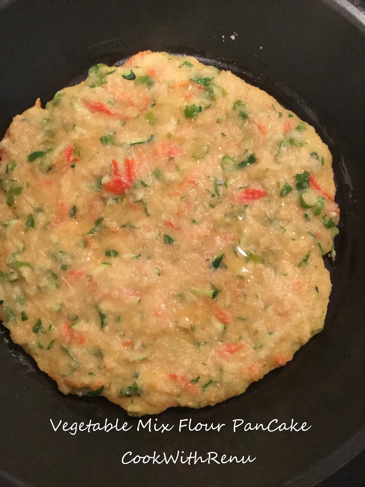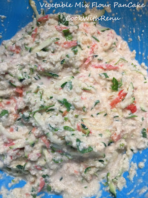 I bought extra coarse rava by mistake. I tried to make my Vegetable Rava Pancake with it but it became too dry and was difficult to bind it into a pancake. So the next time I added Rice flour and some oats flour to give it a base. I always add vegetables which I have in hand, this time I added Cabbage, Zucchini, Capsicum and Parsley. So here goes the recipe………..