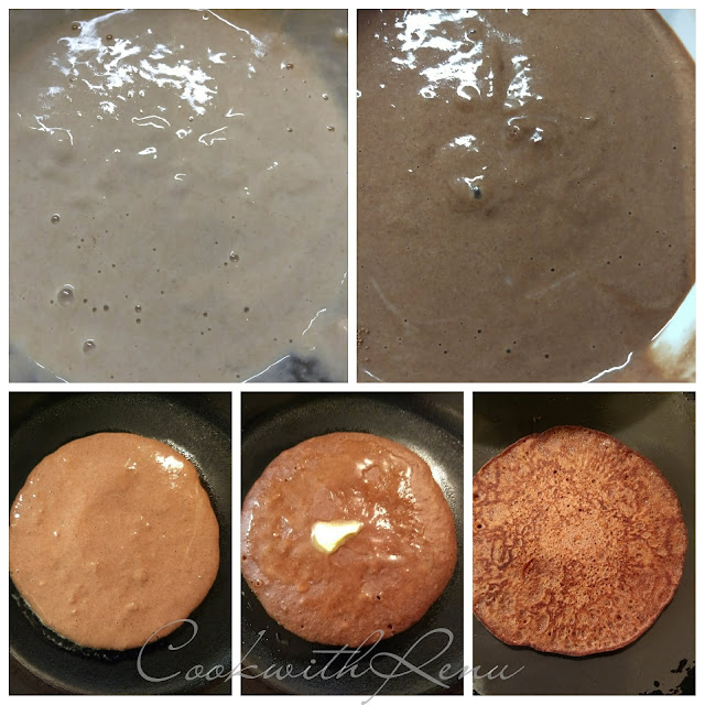 - Heat a non stick pan with and grease it with butter. Pour a spoonful of batter onto the hot tava and spread it to the size and thickness as desired. If the batter is thick it becomes a little difficult to spread it out. In that case just add 1-2 spoons of batter and let it take the shape.